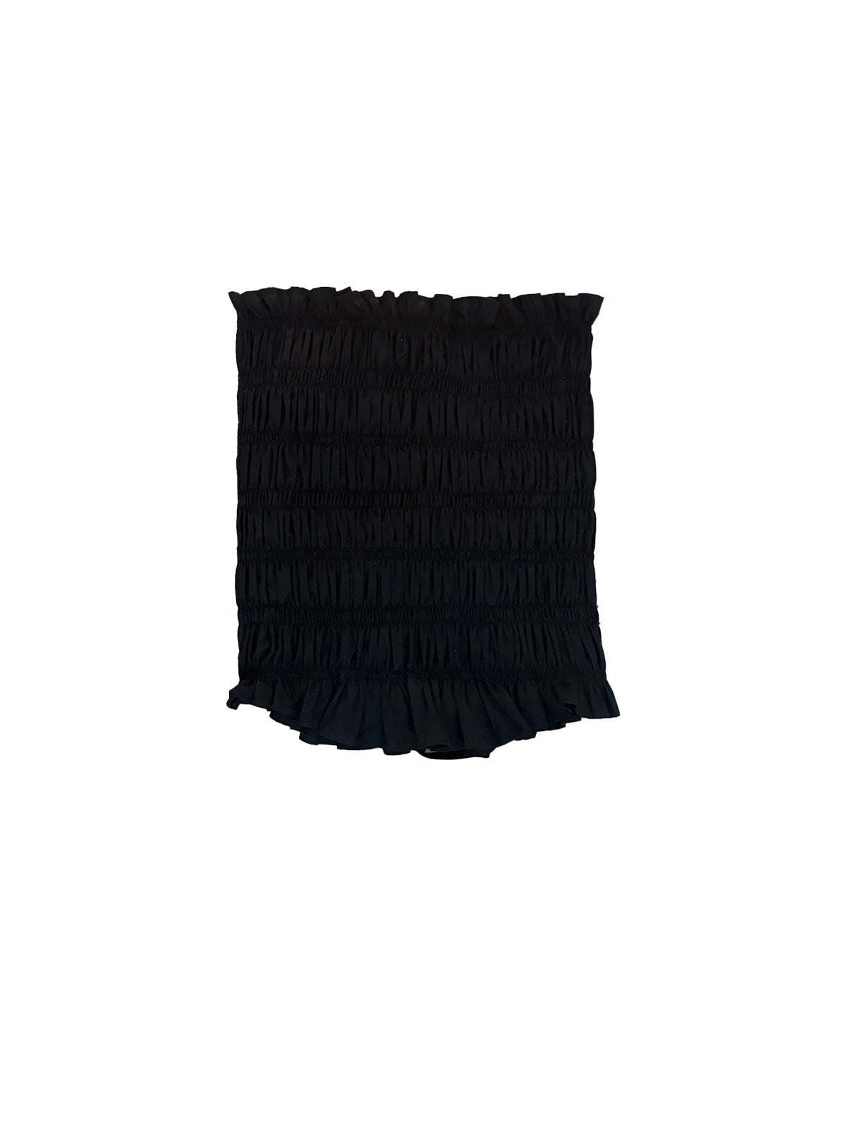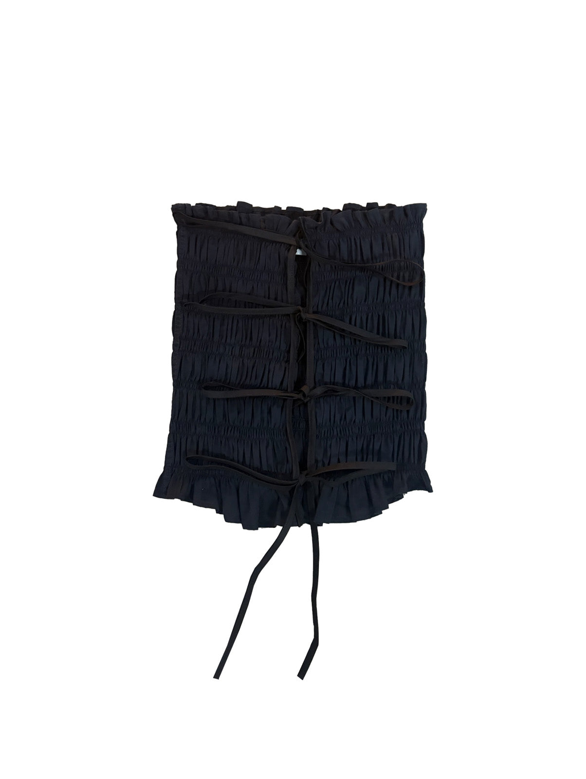 Diseño tipo tubo reversible, permitiendo que el frente y la espalda se intercambien. Silueta fruncida con resortes y lazos que ajustan y decoran. Cada pieza es única en su tela y detalles, 1/1.