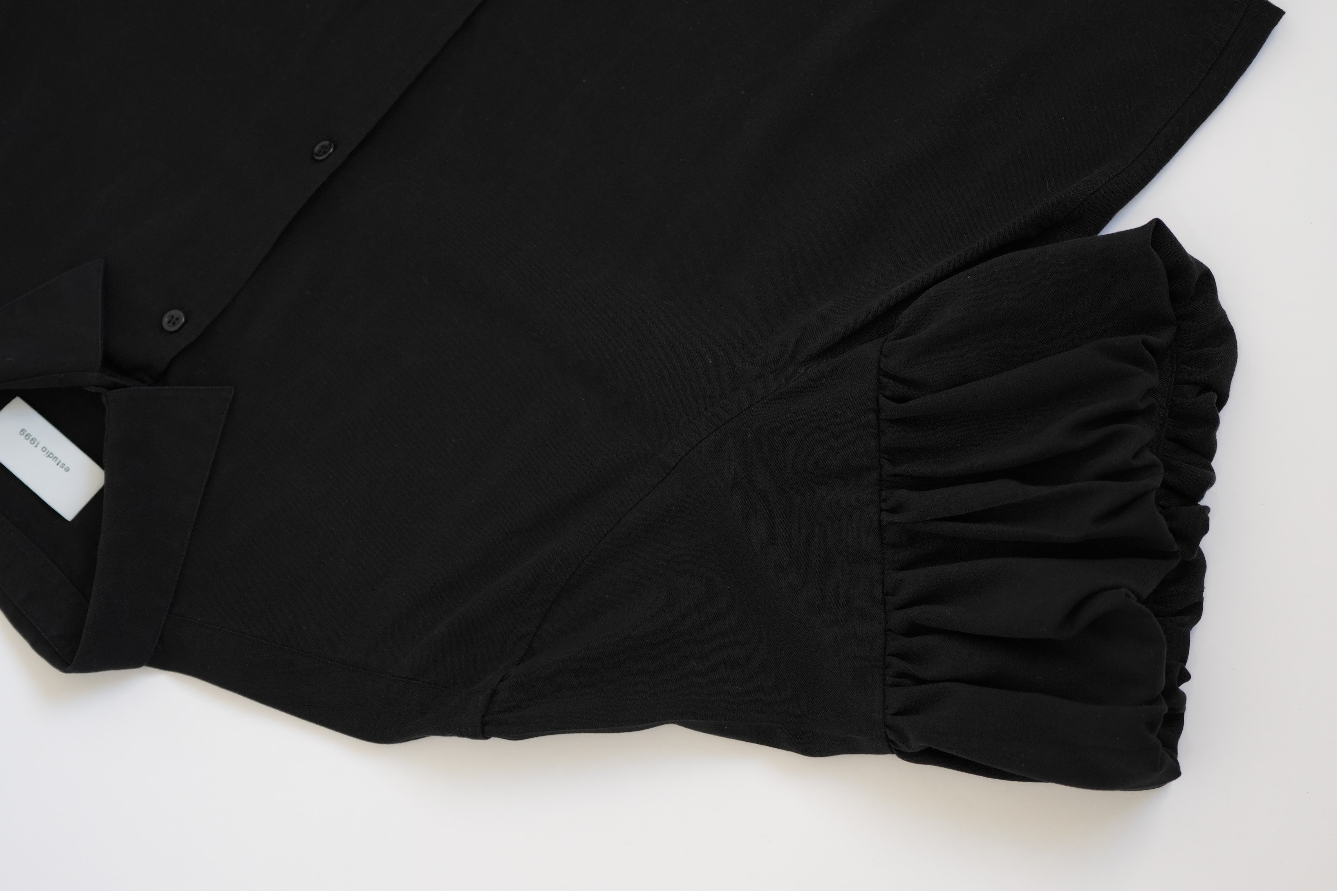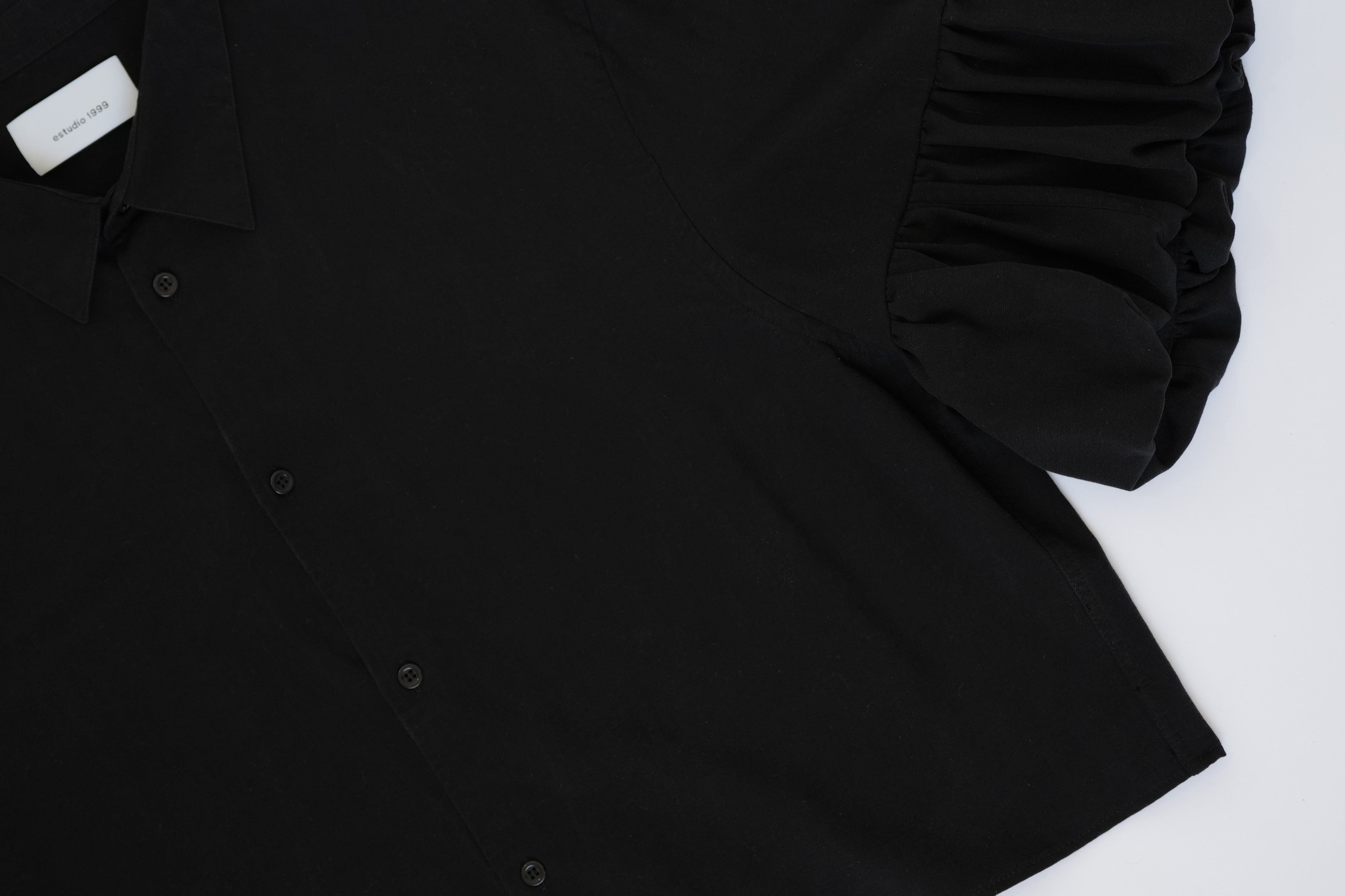 Camisa única de upcycling de manga aglobada.