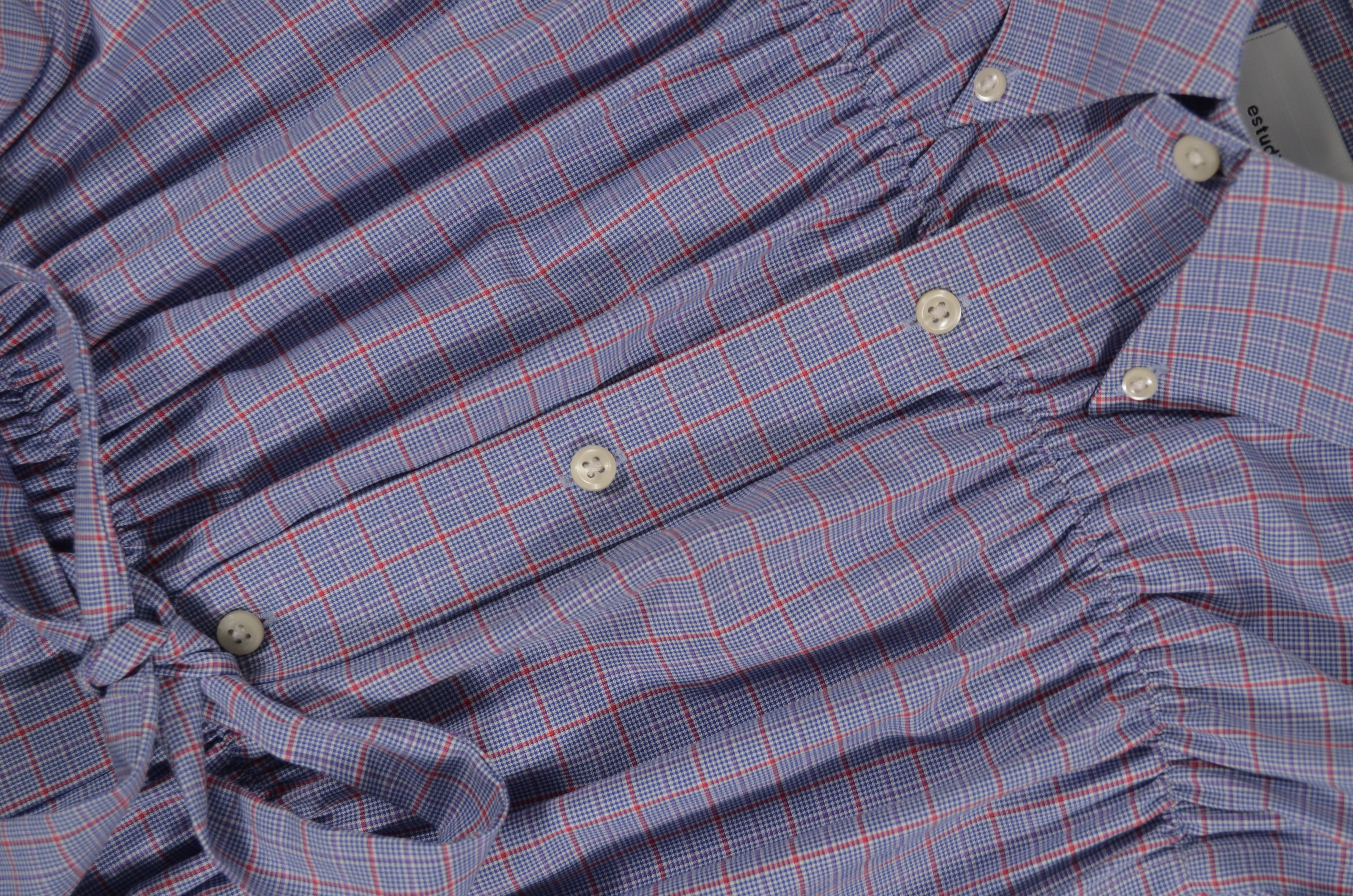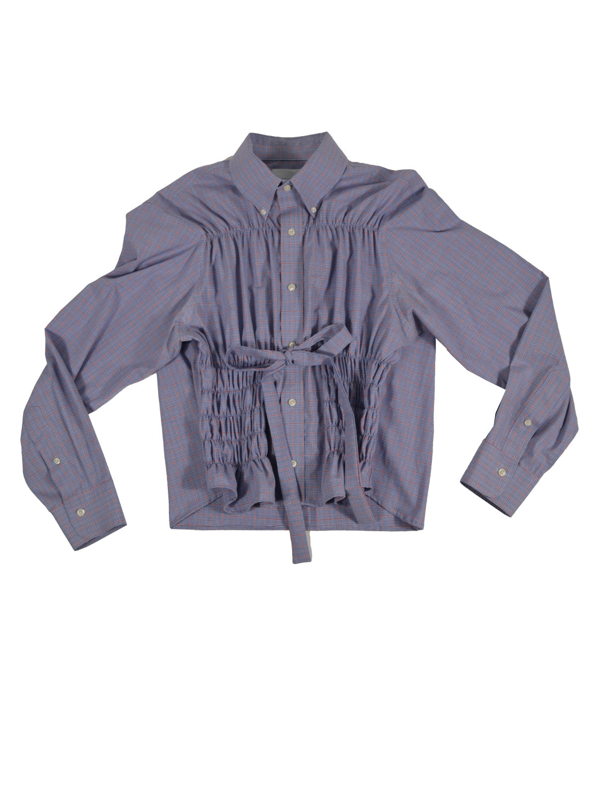 Confeccionada en algodón. Su diseño transforma la cara frontal de la camisa en un corset. Cada pieza es irrepetible, con una personalidad propia en sus detalles y en la tela.