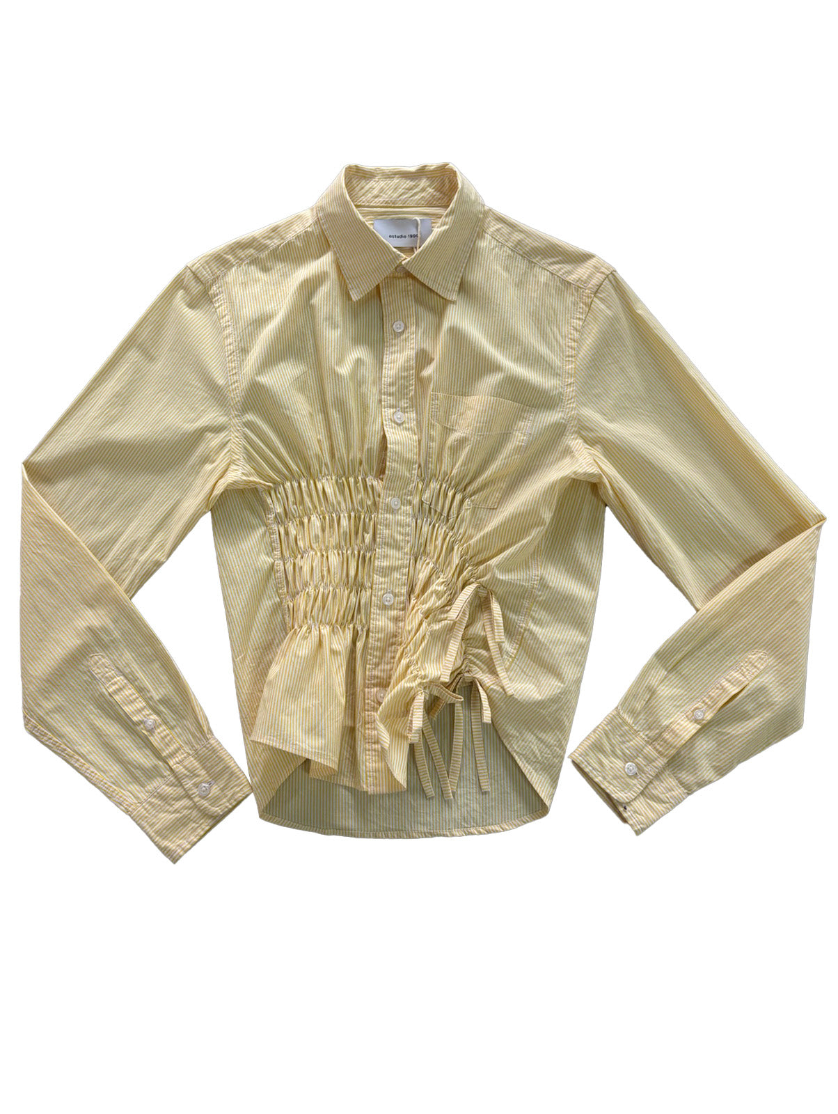 Confeccionada en algodón, su diseño forma una cascada de frunces que define una silueta única. Cada pieza es irrepetible, con una personalidad propia en sus detalles y tela.
