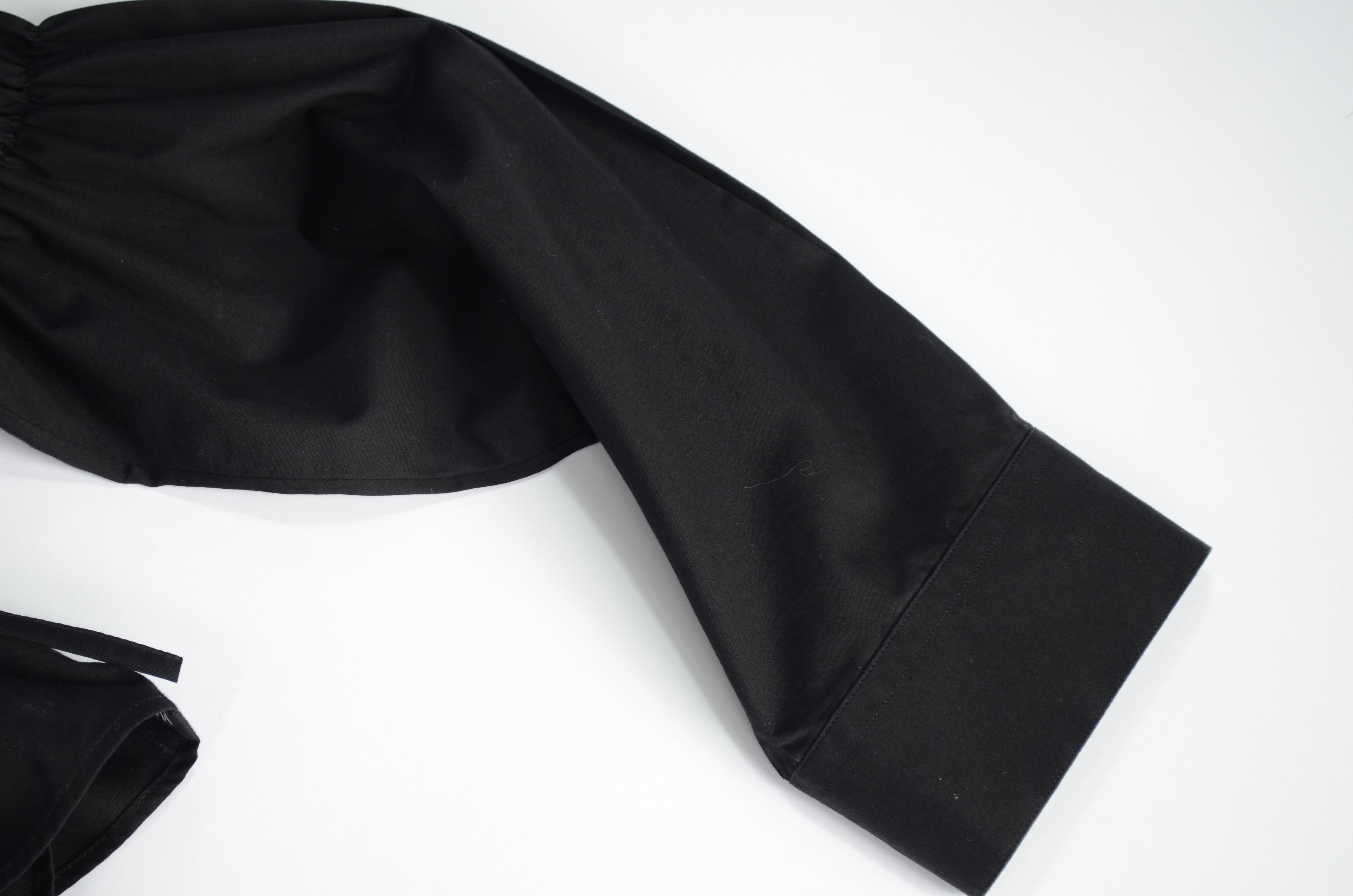 Camisa oversize larga con resortes en todo el contorno inspirada en la textura de la espuma. Con cintas para amarrar en la aletilla, juega con ellas para crear diferentes looks.