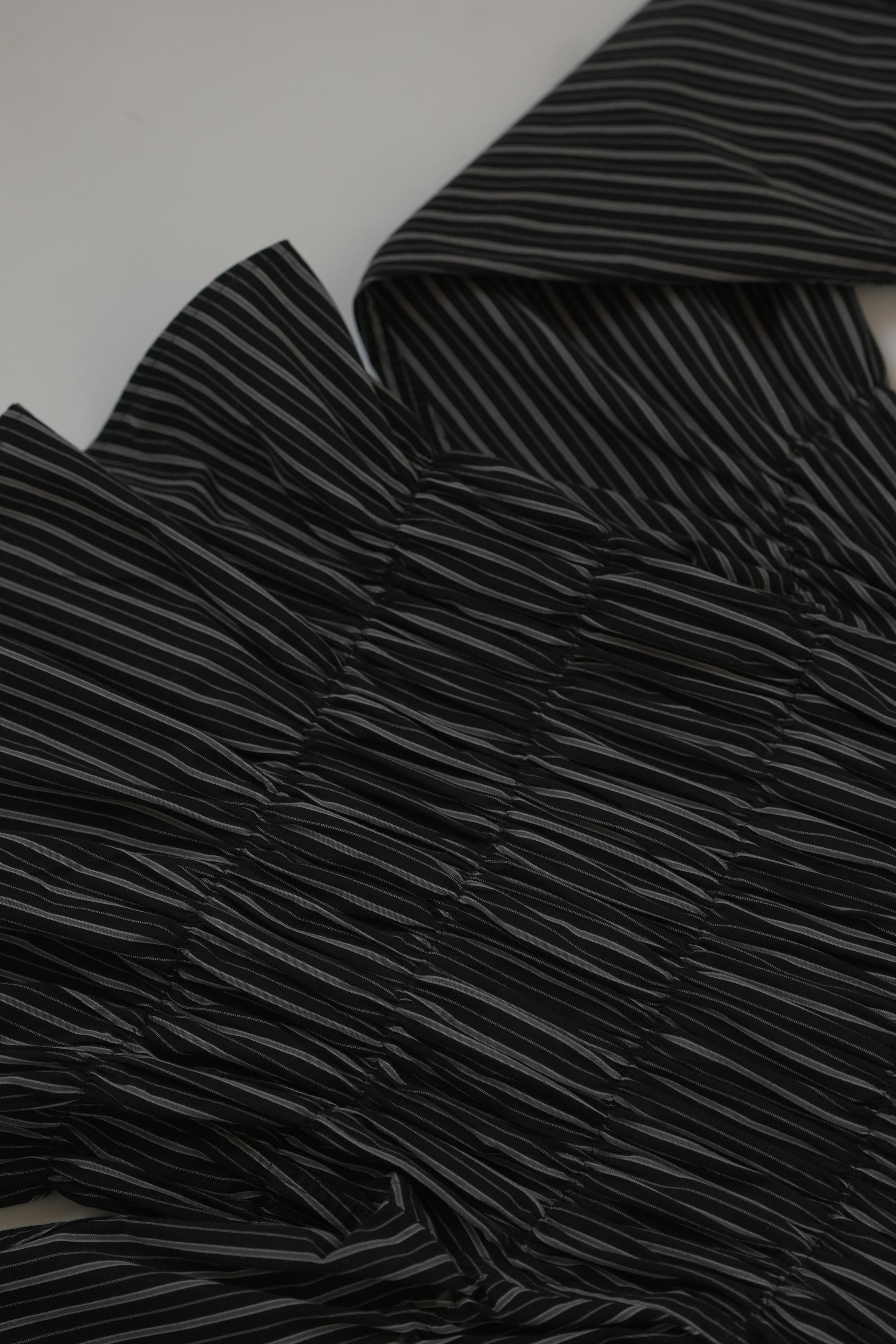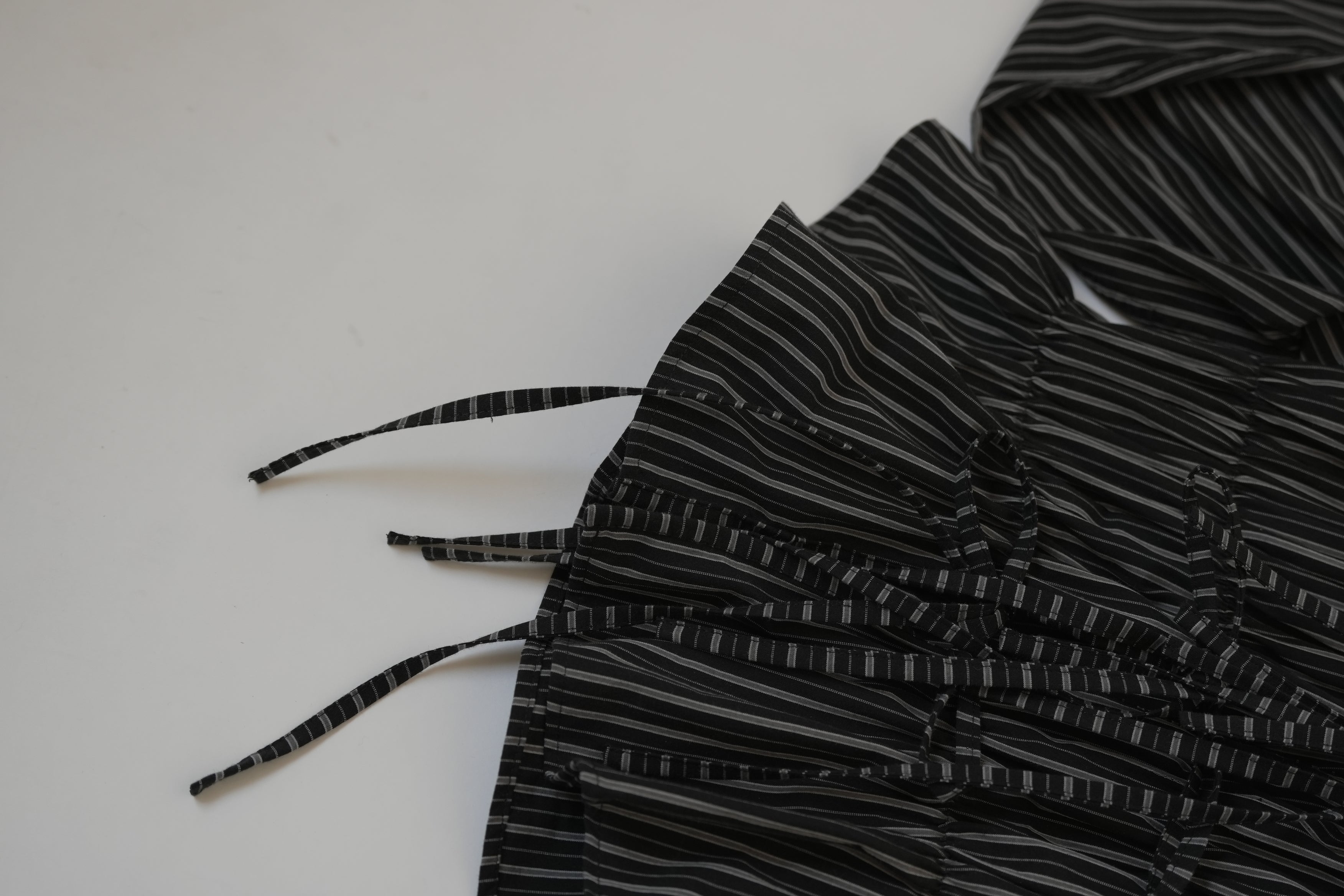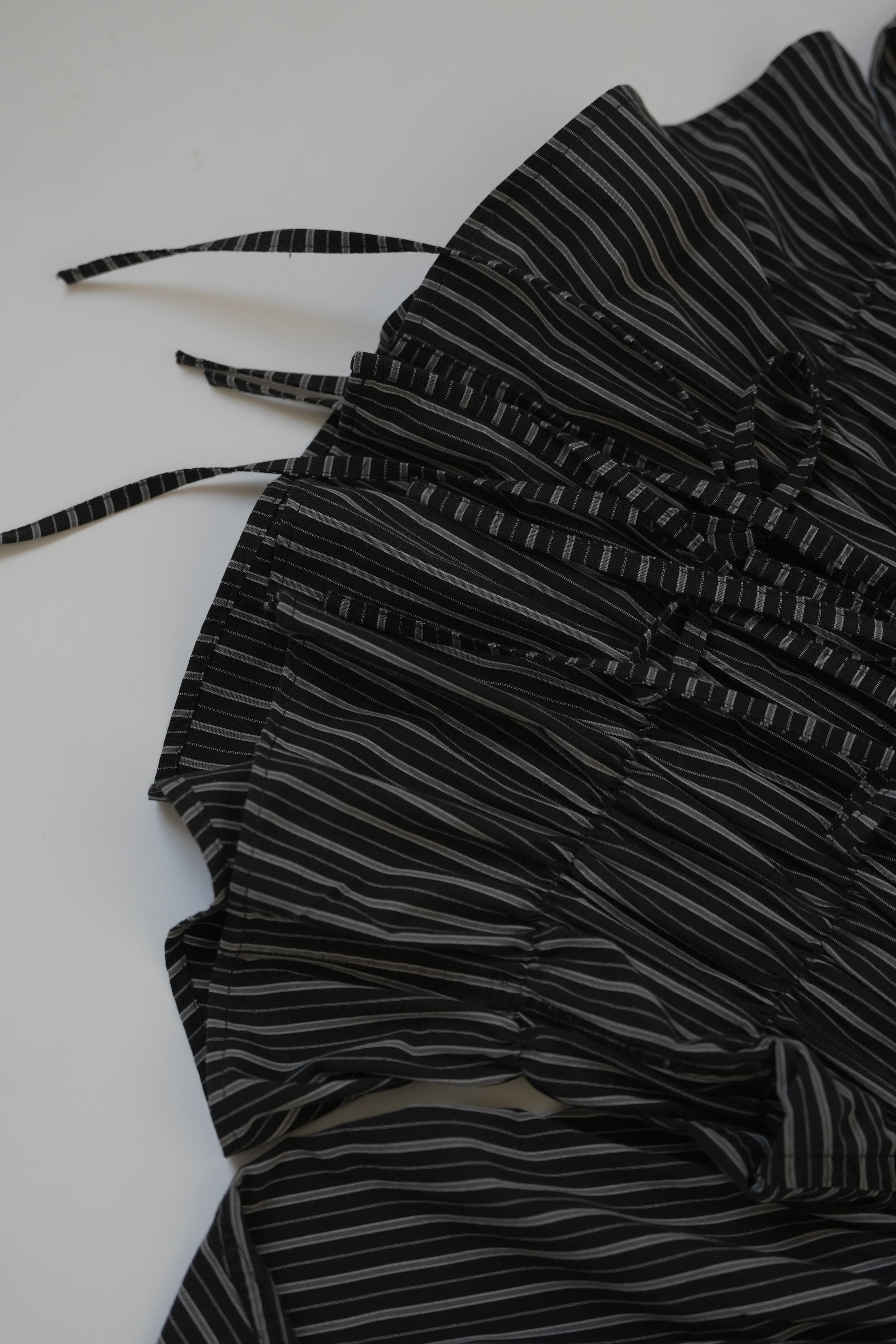 Camisa oversize larga con resortes en todo el contorno inspirada en la textura de la espuma. Con cintas para amarrar en la aletilla, juega con ellas para crear diferentes looks.