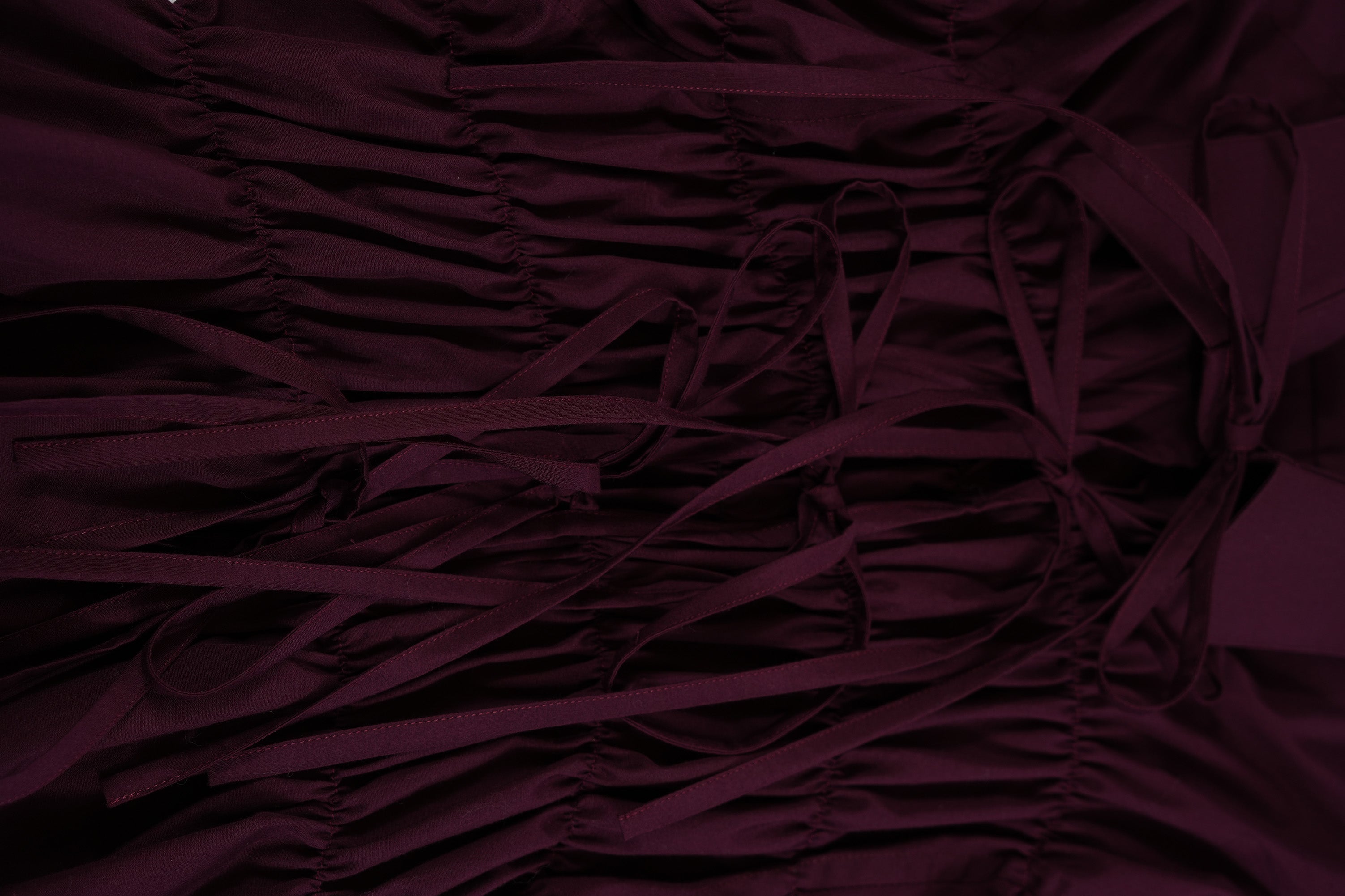 Camisa oversize larga con resortes en todo el contorno inspirada en la textura de la espuma. Con cintas para amarrar en la aletilla, juega con ellas para crear diferentes looks.