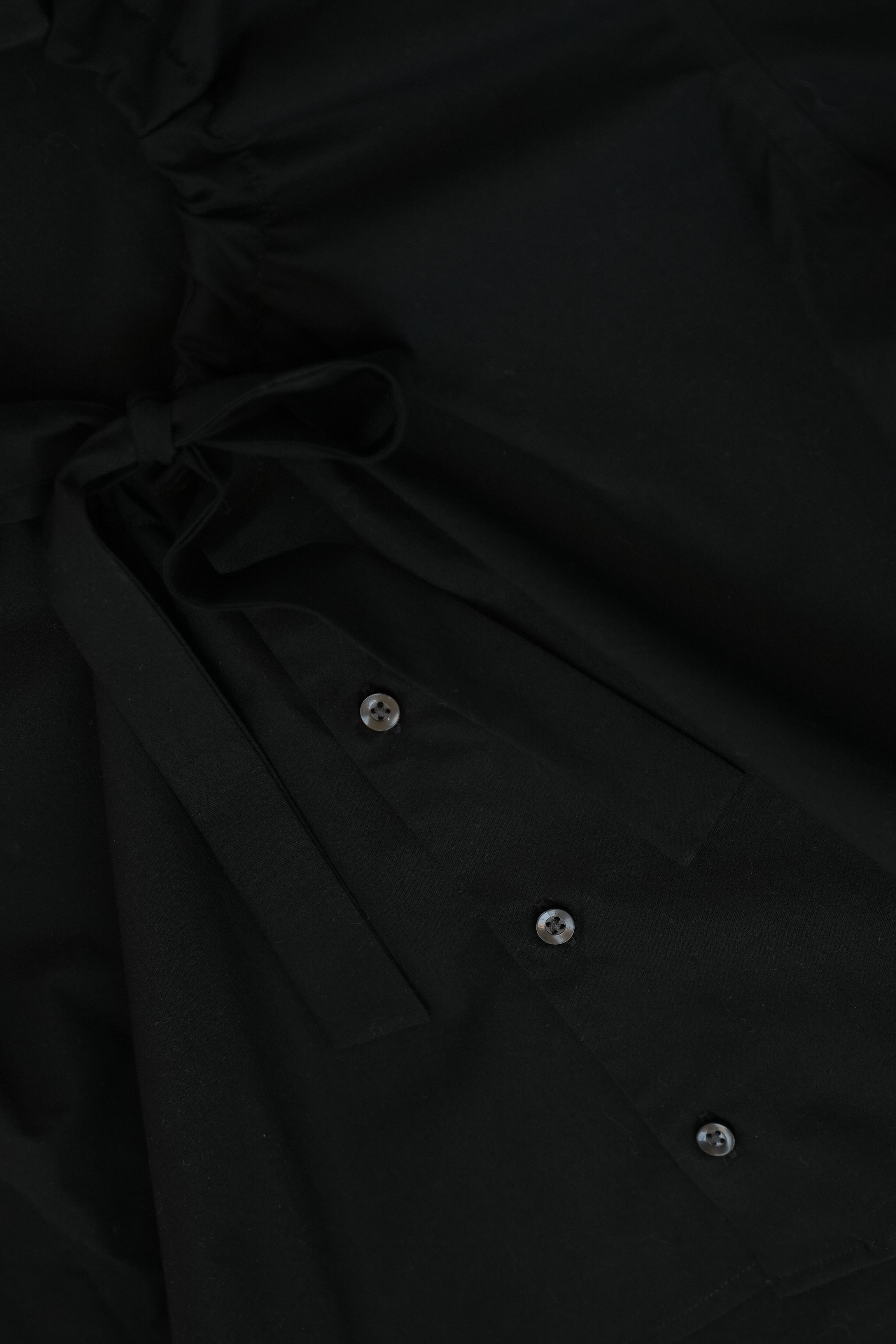 Confeccionada en algodón, su diseño forma una ventana en el pecho. El escote es ajustable con una cinta para hacer moño. Cada pieza es irrepetible, con una personalidad propia en sus detalles y en la tela.