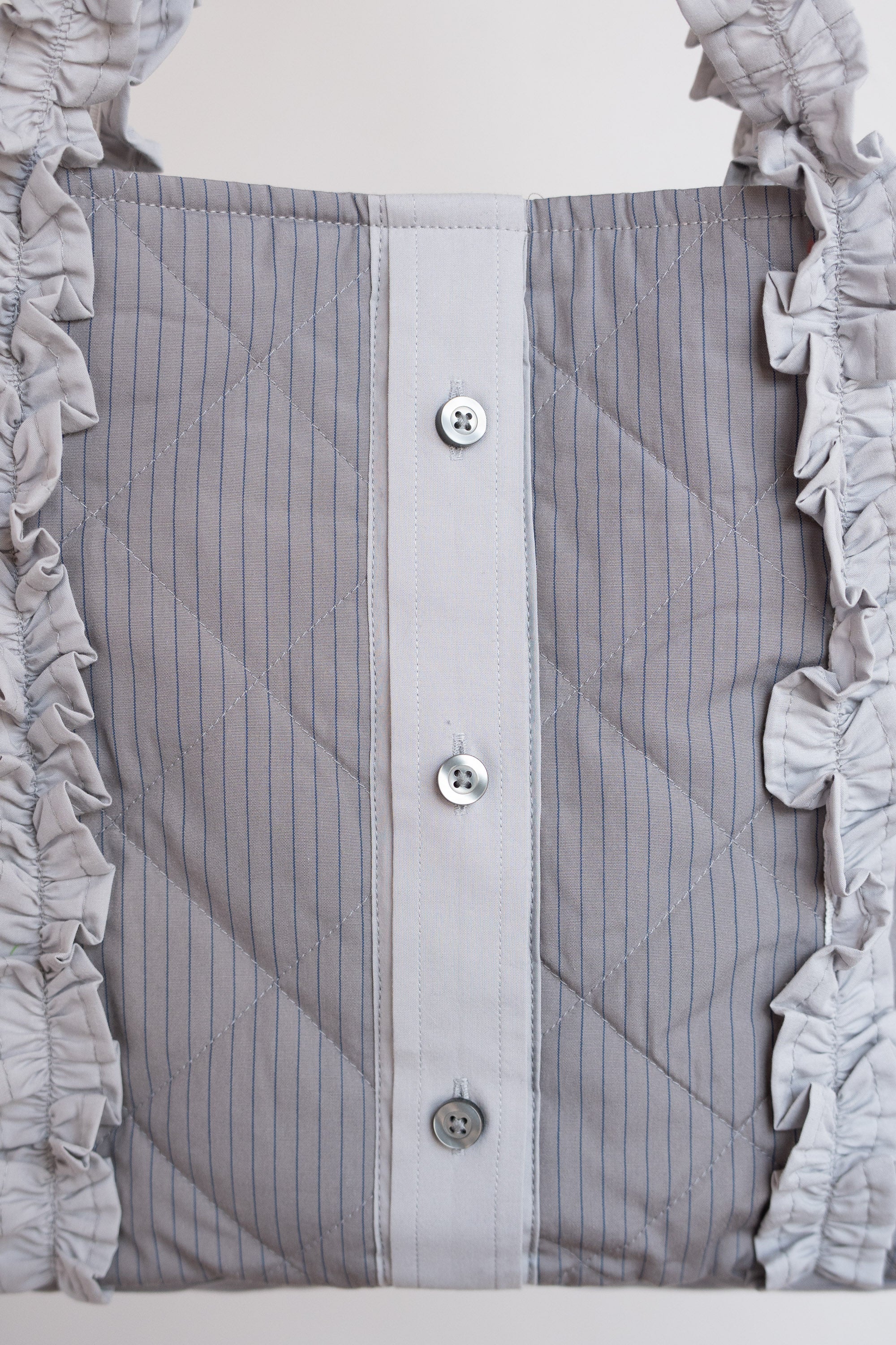 Una bolsa cómoda y funcional hecha a partir de camisas preexistentes, transformadas mediante upcycling para darles una nueva vida. Diseñada para acompañarte todos los días: del súper a una tarde tranquila con revistas. Ligera, suave y práctica, como un domingo. Cada pieza es única.