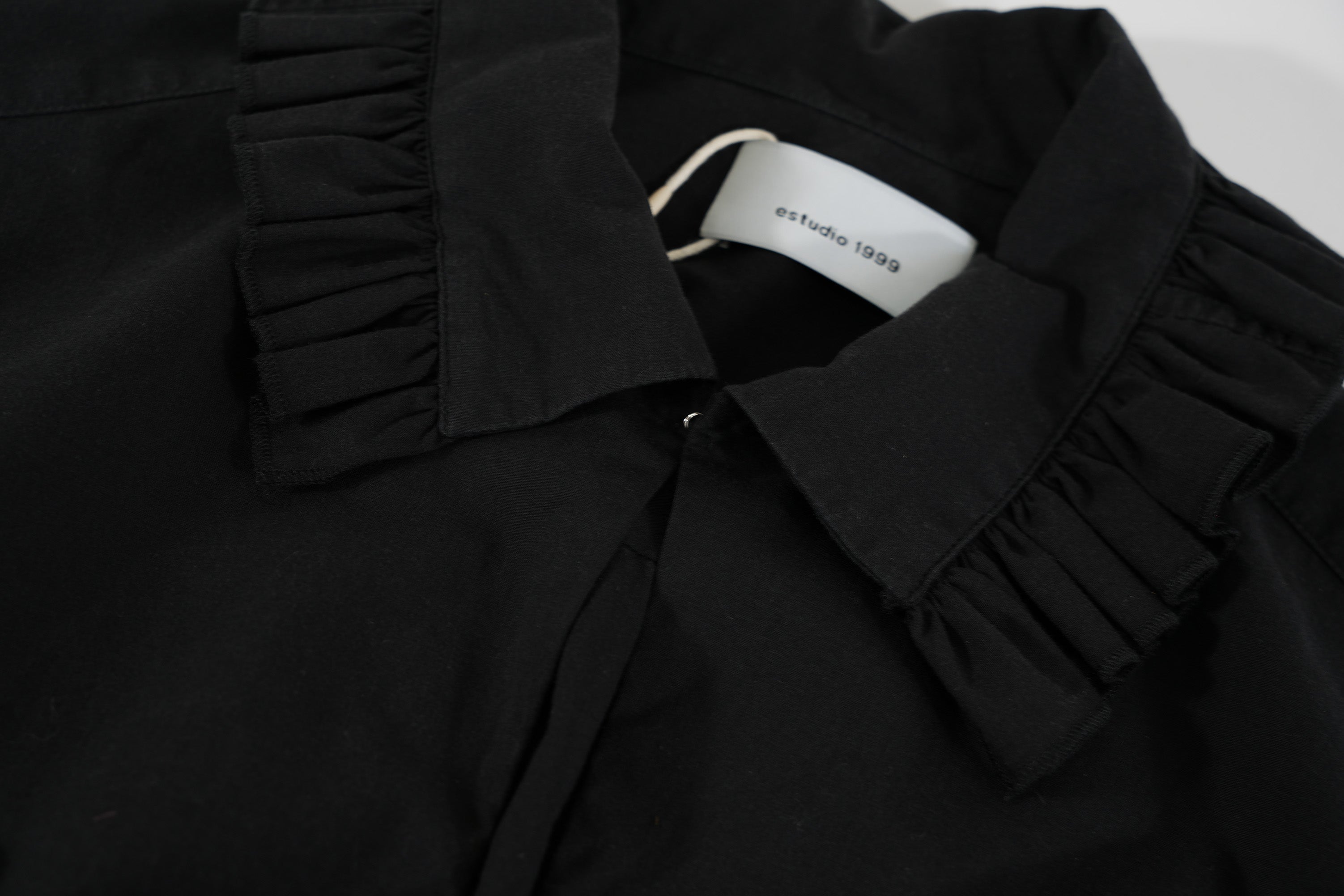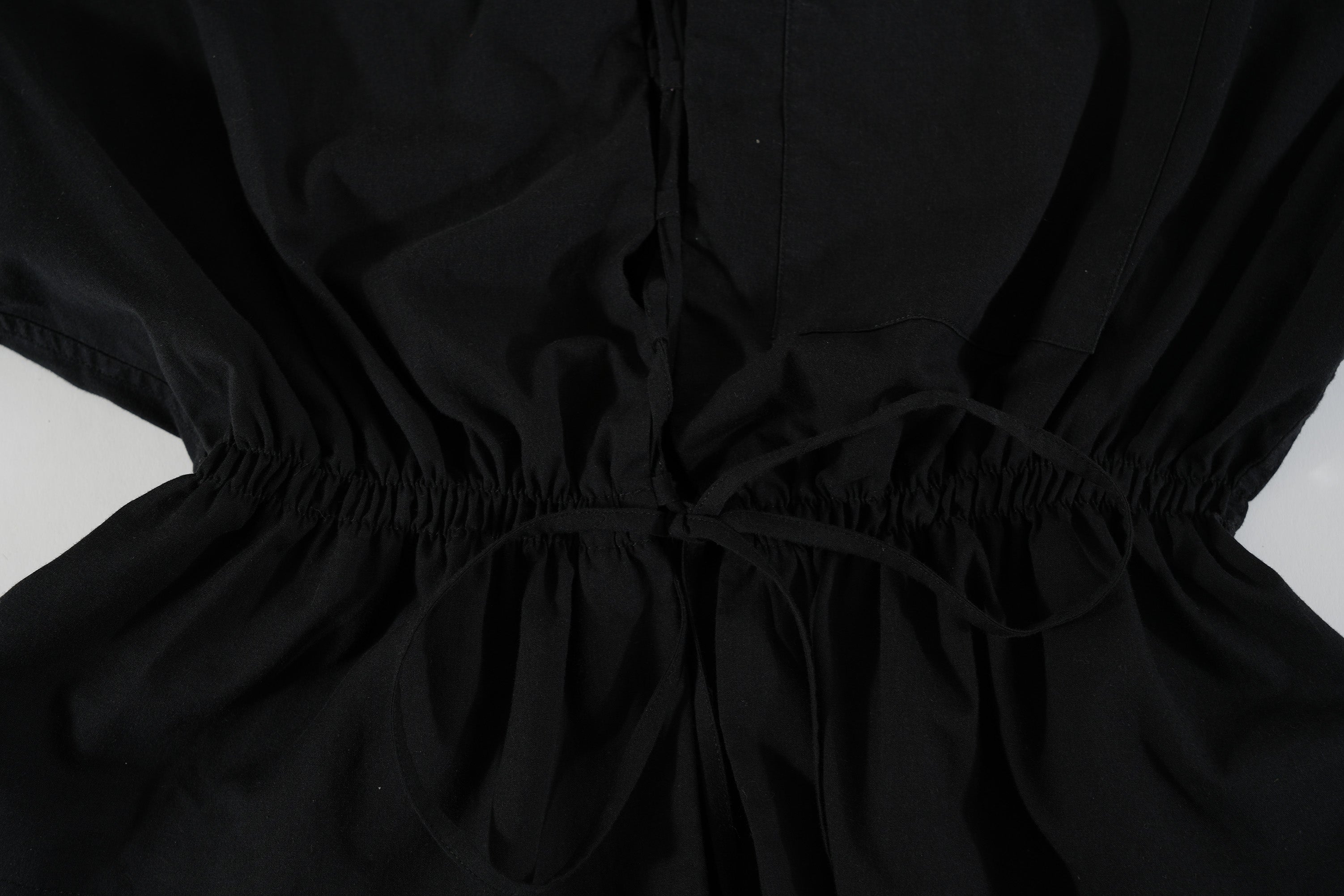 Esta camisa ha sido reinventada a partir de una camisa de hombre preexistente, añadiendo detalles románticos. Cuenta con resortes en la cintura para un ajuste favorecedor y delicadas cintas en el centro que aportan un toque femenino y distintivo. Fit oversize.