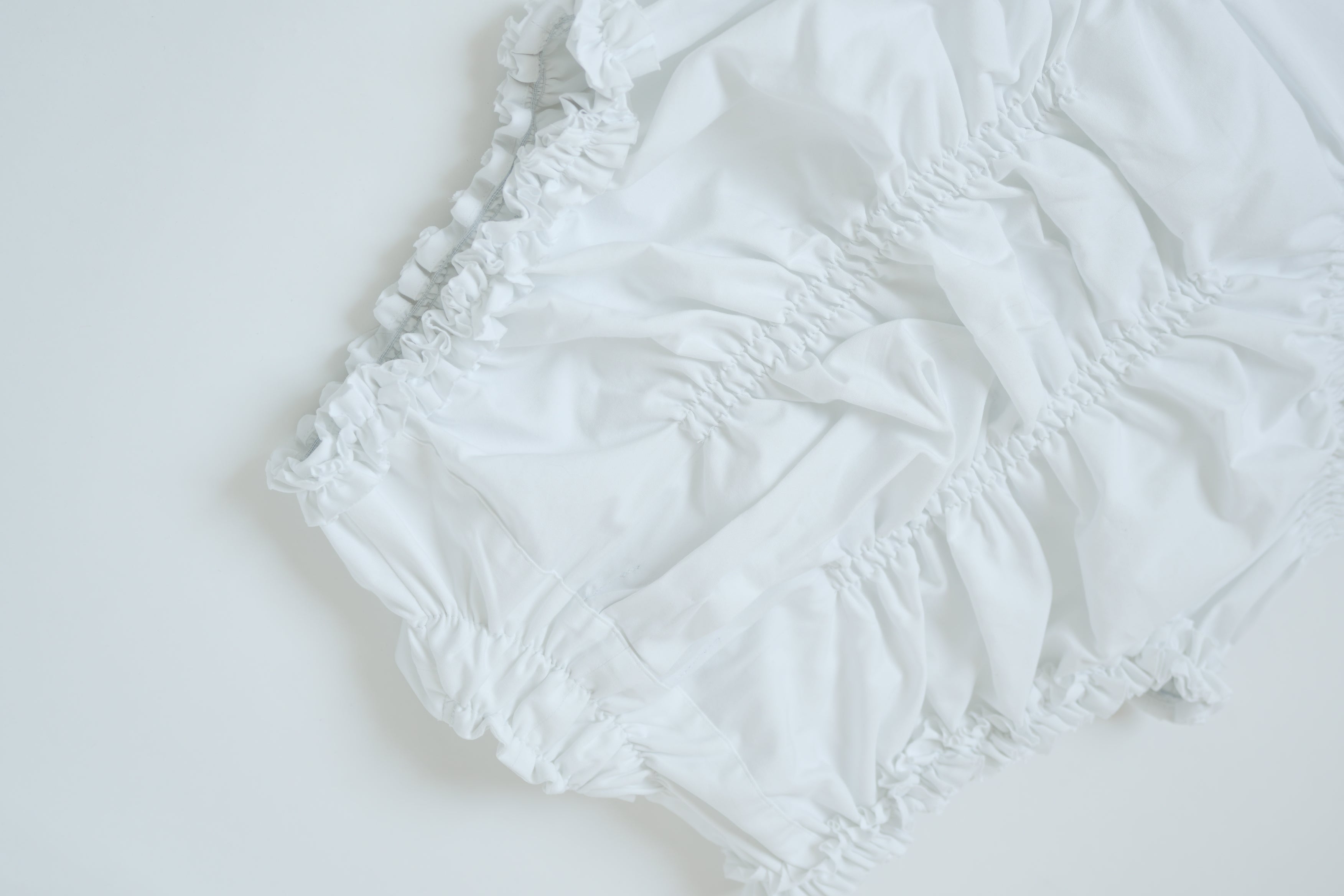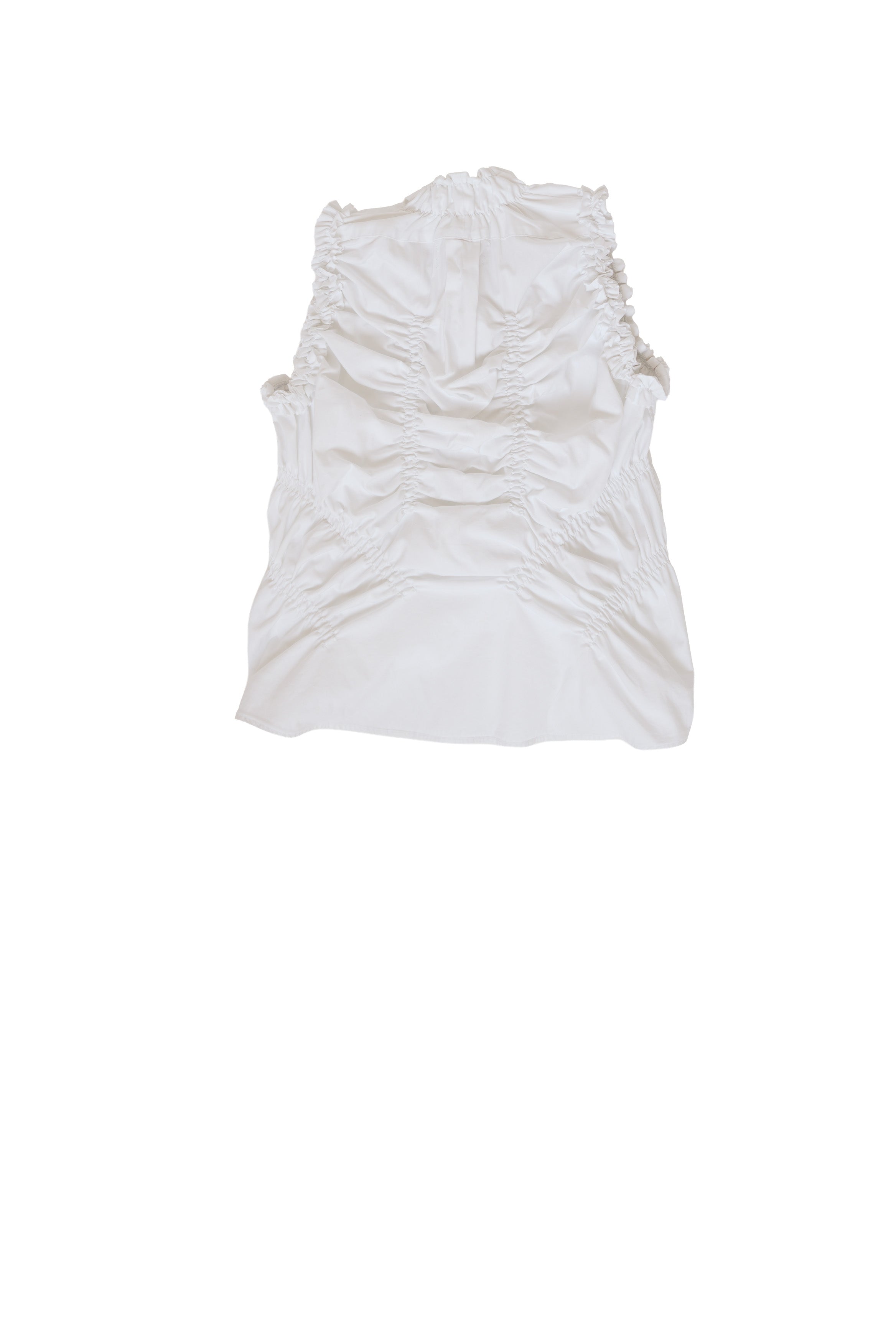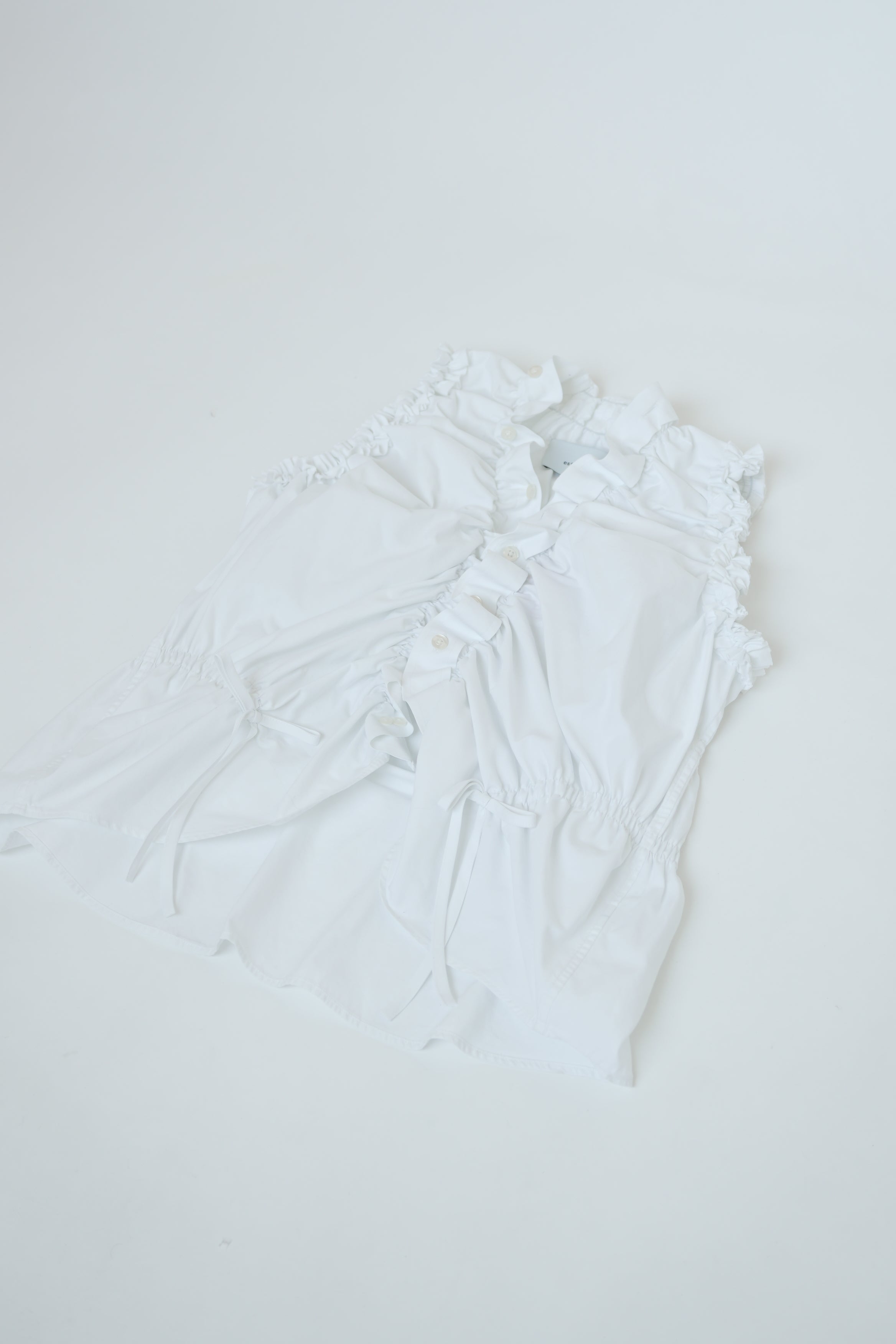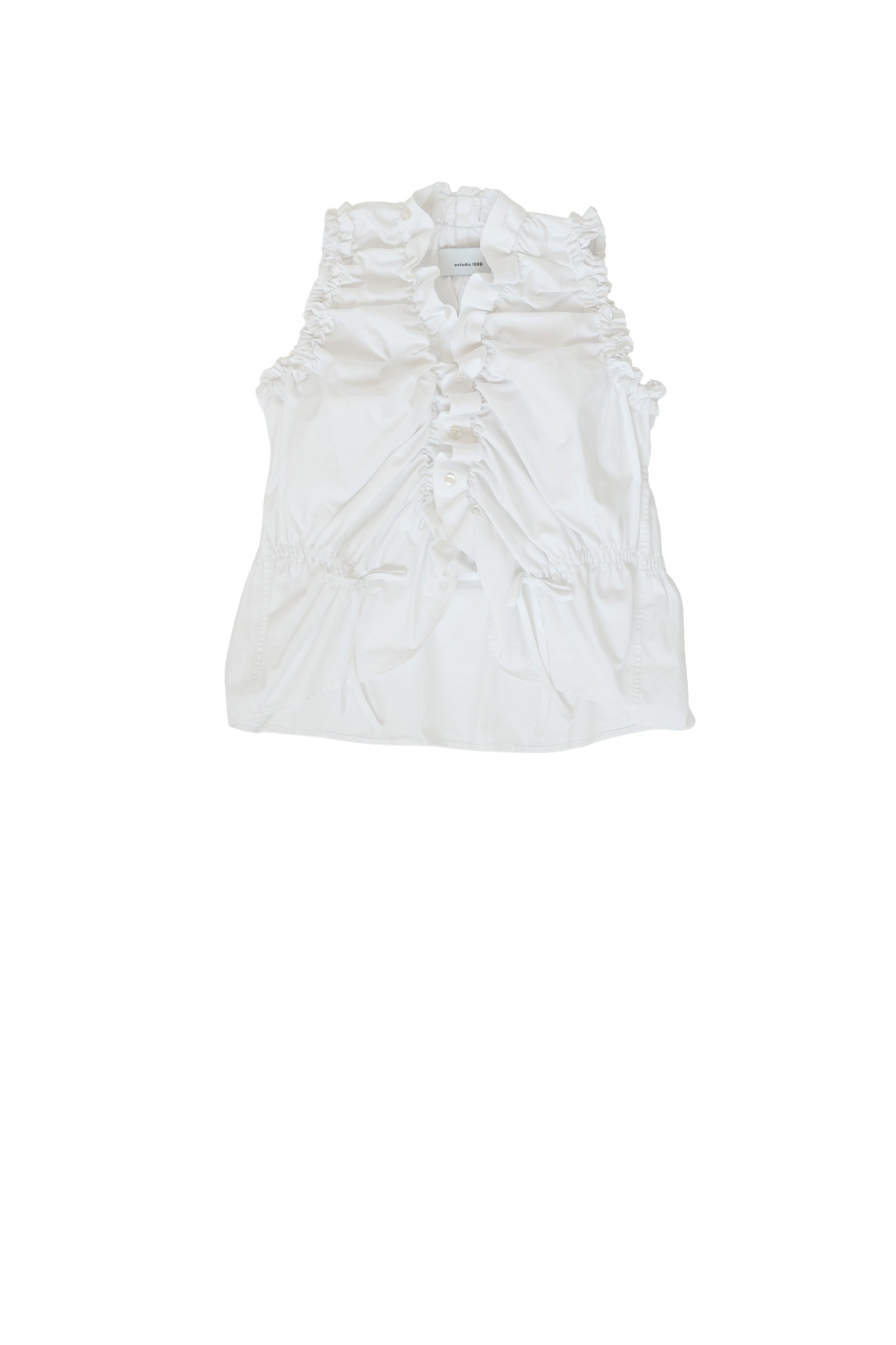 Camisa upcycled 1/1 con elásticos, moños y olanes.