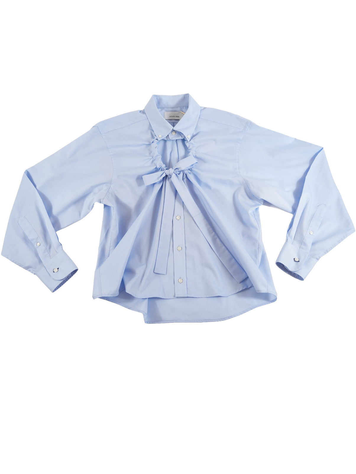 Confeccionada en algodón, su diseño forma una ventana en el pecho. El escote es ajustable con una cinta para hacer moño. Cada pieza es irrepetible, con una personalidad propia en sus detalles y en la tela.